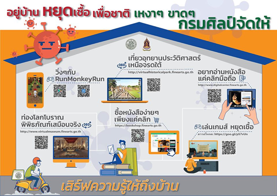 กรมศิลปากร 8 เม.ย.-กรมศิลปากรชวนชมบริการข้อมูลมรดกศิลปวัฒนธรรมผ่านระบบเครือข่ายอินเทอร์เน็ต ส่งตรงถึงบ้านในช่วงปิดแหล่งเรียนรู้จากสถานการณ์โควิด-19