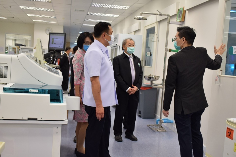 นายอนุทิน ชาญวีรกูล รองนายกรัฐมนตรีและรัฐมนตรีว่าการกระทรวงสาธารณสุข เยี่ยมชมระบบบริการตรวจรักษาโรคติดเชื้อไวรัสโคโรนา 2019(โควิด-19) โรงพยาบาลจุฬาลงการณ์ สภากาชาดไทย การตรวจคัดกรองเบื้องต้นด้วยระบบปรึกษาทางไกล คลินิกควบคุมการติดเชื้อทางเดินหายใจ ห้องปฏิบัติการตรวจเชื้อไวรัสโควิด-19 ด้วยเครื่อง RT-PCR โดยมี ศ.นพ.สุทธิพงศ์ วัชรสินธุ ผู้อำนวยการโรงพยาบาล และคณบดีคณะแพทยศาสตร์จุฬาลงกรณ์มหาวิทยาลัย และศ.นพ.ธีระวัฒน์ เหมะจุฑา หัวหน้าศูนย์วิทยาศาสตร์สุขภาพโรคอุบัติใหม่ คณะแพทยศาสตร์จุฬาลงกรณ์มหาวิทยาลัย พร้อมคณะผู้บริหารร่วมต้อนรับ