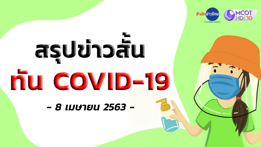 สำนักข่าวไทย 8 เม.ย. 63 – สรุปข่าวสั้น ทันโควิด-19 วันนี้ (8 เม.ย. 63) ไทยติดเชื้อเพิ่มขึ้นอีก 111 ตายเพิ่มอีก 3