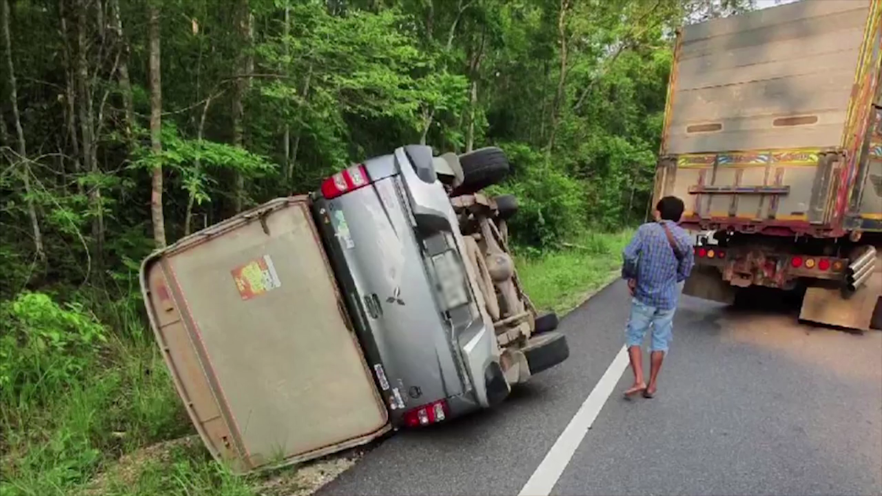 เมื่อเวลา 17.00 น. วันนี้ (9 เม.ย.) ร.ท.สุระ โสรักษ์นิฐ รองผู้บังคับการกองร้อยทหารพรานที่ 1306 รับแจ้งจากหารพรานประจำด่านเส้นทางเขาอ่างฤาไนมีอุบัติเหตุรถกระบะบรรทุกสินค้า ทะเบียน บน 8073 สระแก้ว เสียหลักพลิกตะแคงริมถนน 3259 (สายเดิม) เขต อ.ท่าตะเกียบ จ.ฉะเชิงเทรา และมีผู้บาดเจ็บ 1 ราย ขณะนั้นมีช้างป่าเดินออกมาบนเส้นทาง