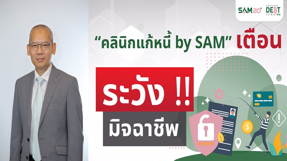 สำหรับผู้ที่ต้องการร้องเรียนเรื่องการแอบอ้างชื่อหรือเรื่องอื่นใดที่เกี่ยวเนื่องกับ SAM หรือคลินิกแก้หนี้ หรือมีข้อสงสัยสอบถามและสนใจสมัครเข้าร่วม “โครงการคลินิกแก้หนี้” สามารถติดต่อกับ SAM หรือ ทางโครงการคลินิกแก้หนี้ได้โดยตรงที่ Call Center 02-610-2266 ทุกวันจันทร์-ศุกร์ เวลา 8.30-17.00 น. หรือสมัครผ่านเว็บไซต์ www.คลินิกแก้หนี้.com หรือ www.debtclinicbysam.com หรือ แอดไลน์ @debtclinicbysam หรือ Facebook คลินิกแก้หนี้ รวมทั้งติดตามเกร็ดความรู้ดีๆ ได้ที่ Debtclinicbysam บน YouTube.-สำนักข่าวไทย