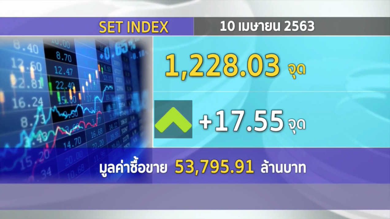 กทม. 10 เม.ย.- ตลาดหลักทรัพย์ปิดวันนี้ที่ระดับ 1,228.03 จุด เพิ่มขึ้น 17.55 จุด (+1.45%) มูลค่าการซื้อขาย 53,795.91 ล้านบาท.-สำนักข่าวไทย