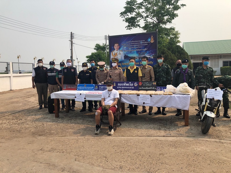 วันนี้ (12 เม.ย.) น.อ.วรัท โกมลรัตน์ ผู้บังคับหน่วยเรือรักษาความสงบเรียบร้อยตามลำน้ำโขง (ผบ.นรข.) เขตหนองคาย , น.ต.ธิติวัฒน์ เนียมประพันธ์ หัวหน้าสถานีเรือหนองคาย, นายเจริญจิตต์ สืบสาววงศ์ นายอำเภอเมืองหนองคาย แถลงการสนธิกำลังป้องปรามสิ่งผิดกฎหมายและยาเสพติดอย่างเข้มงวด โดยเฉพาะตามแนวชายแดน และจับกุมผู้ต้องหายาเสพติดได้ 1 ราย คือ นายพรชัย ปานพิมพ์ อายุ 37 ปี ขณะขับรถจักรยานยนต์มาจอดริมแม่น้ำโขงบ้านสีกาย รอยต่อบ้านจอมแจ้ง ต.สีกาย อ.เมือง เมื่อค่ำวานนี้ (11 เม.ย.) หลังมีเรือหางยาวมาจากฝั่งเพื่อนบ้านนำกระสอบยาบ้า 167,000 เม็ด ไอซ์ 708 กรัม มาวางไว้ที่ชายฝั่ง นอกจากนี้ ยังได้การตรวจสอบสารเสพติดร่างกายของนายพรชัย พบปัสสาวะมีสารสีม่วง