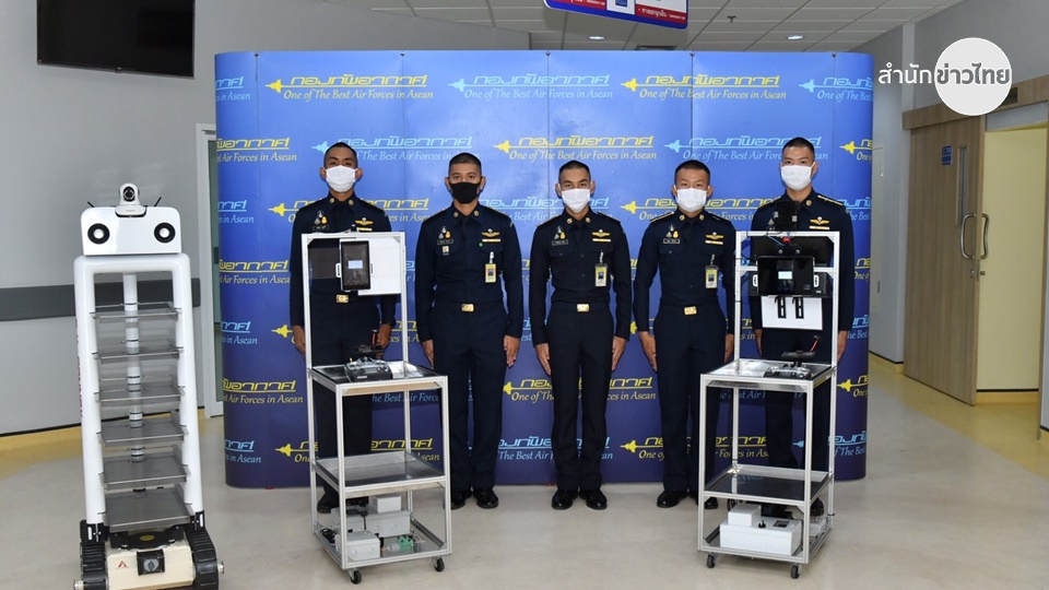 นอกจากนี้ เจ้ากรมแพทย์ทหารอากาศ ยังได้รับมอบหุ่นยนต์จำนวน 1ตัว จาก นายพีรพล ตระกูลช่าง กรรมการผู้จัดการบริษัท อาร์ วี คอนเน็กซ์ โดยหุ่นยนต์ตัวนี้พัฒนาขึ้นจากความร่วมมือของบริษัท อาร์ วี คอนเน็กซ์ กับ มหาวิทยาลัยเทคโนโลยีมหานคร บนมาตรฐานหุ่นยนต์ใช้งานทางทหาร โดยมุ่งเน้นการพัฒนาในประเทศและสามารถปรับเปลี่ยนได้ตามความต้องการของผู้ใช้งาน ซึ่งด้วยเหตุที่เป็นการพัฒนาเองทำให้สามารถควบคุมองค์ประกอบสำคัญทั้งหมด ปรับเปลี่ยนได้ทั้ง Hardware และ Software ชิ้นส่วนต่าง ๆ ที่สำคัญก็ออกแบบและผลิตในประเทศ ในกรณีนี้จึงสามารถปรับเปลี่ยนอุปกรณ์ประกอบบางส่วนให้ตอบสนองต่อการใช้งานในสถานการณ์การแพร่ระบาดของ COVID-19 เพื่อสนับสนุนการส่งของหรืออาหารในพื้นที่ควบคุม ลดความเสี่ยงให้กับบุคลากรทางการแพทย์ โดยหุ่นยนต์สามารถรับน้ำหนักได้มาก มีรัศมีการควบคุมที่สามารถขยายได้ตามพื้นที่ปฏิบัติงาน ผู้ควบคุมสามารถสื่อสารกับผู้ป่วยได้แบบสองทางผ่านระบบสื่อสารไร้สายได้อีกด้วย.-สำนักข่าวไทย