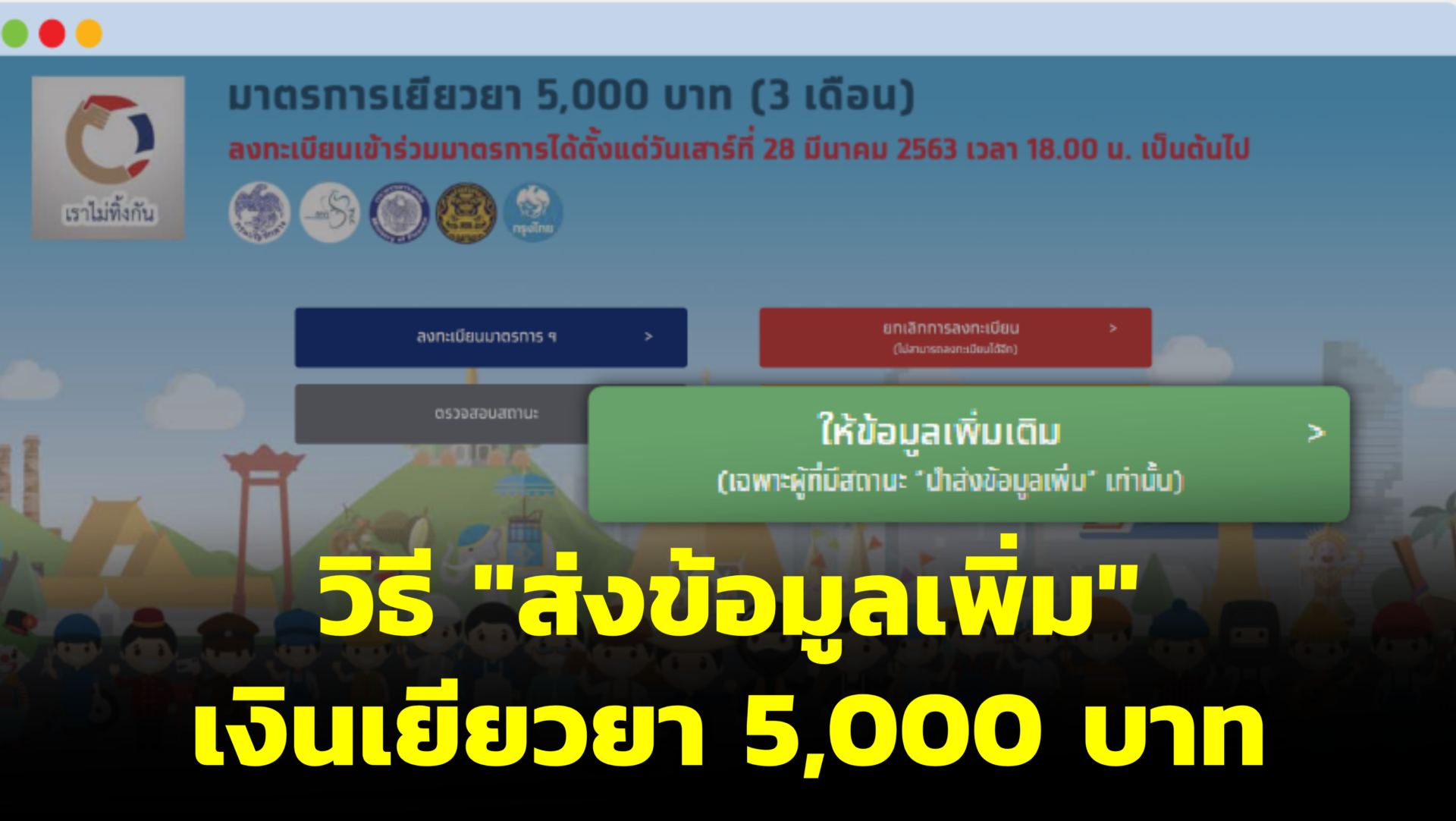 สำนักข่าวไทย 13 เม.ย. 63 – สำหรับบางคนที่ลงทะเบียนรับเงินเยียวยา ผ่าน www.เราไม่ทิ้งกัน.com และเมื่อเช็คสถานะเงินเยียวยา ปรากฏว่าระบบแจ้งให้ “ส่งข้อมูลเพิ่ม” ให้ดำเนินการดังนี้
