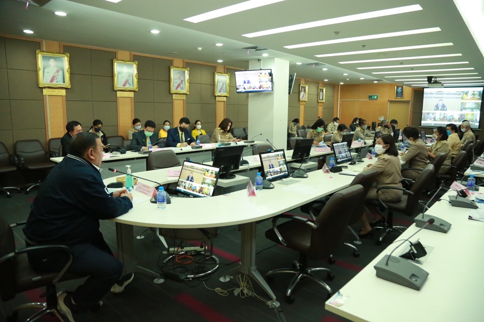 นายจุติ ไกรฤกษ์ รัฐมนตรีว่าการกระทรวงการพัฒนาสังคมและความมั่นคงของมนุษย์ (รมว.พม.)ประชุมทางไกลผ่านระบบ Video Conference ร่วมกับพัฒนาสังคมและความมั่นคงของมนุษย์ (พมจ.) ในพื้นที่จังหวัดภาคกลางและภาคใต้ ติดตามการช่วยเหลือกลุ่มเป้าหมายที่ได้รับผลกระทบจากการแพร่ระบาดของโรคติดเชื้อไวรัสโคโรน่า 2019 (โควิด-19)
