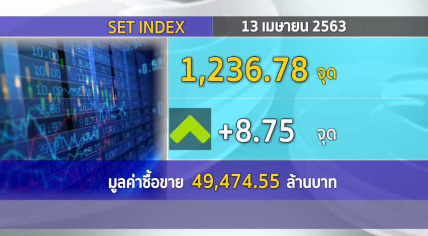 ตลาดหลักทรัพย์แห่งประเทศไทย 13 เม.ย. – ตลาดหลักทรัพย์ปิดวันนี้ที่ระดับ 1,236.78 จุด เพิ่มขึ้น 8.75 จุด (+0.71%) มูลค่าการซื้อขาย 49,474.55 ล้านบาท การซื้อขายหุ้นวันนี้ ดัชนีหุ้นไทยเคลื่อนไหวทั้งในแดนบวก-ลบ โดยทำระดับสูงสุดที่ 1,237.23 จุด และทำระดับต่ำสุด 1,220.00 จุด.-สำนักข่าวไทย