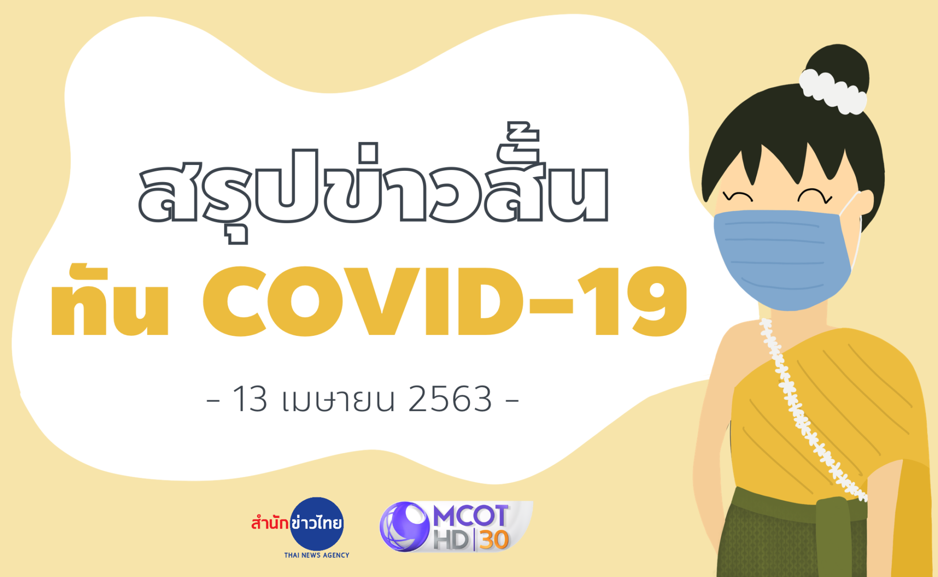 สำนักข่าวไทย 13 เม.ย. 63 – สรุปข่าวสั้นทันโควิด-19 วันนี้ (13 เม.ย. 63) ไทยตายอีก 2 ผู้ป่วยใหม่ลดลงต่อเนื่อง