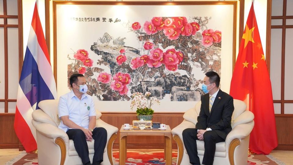 Charge d’affaires of the Chinese Embassy Yang Xin on Monday handed over medical materials including 20,000 N95 respirators, 100,000 surgical masks and 2,500 Personal Protective Equipment (PPE) suits to the Thai public health minister.