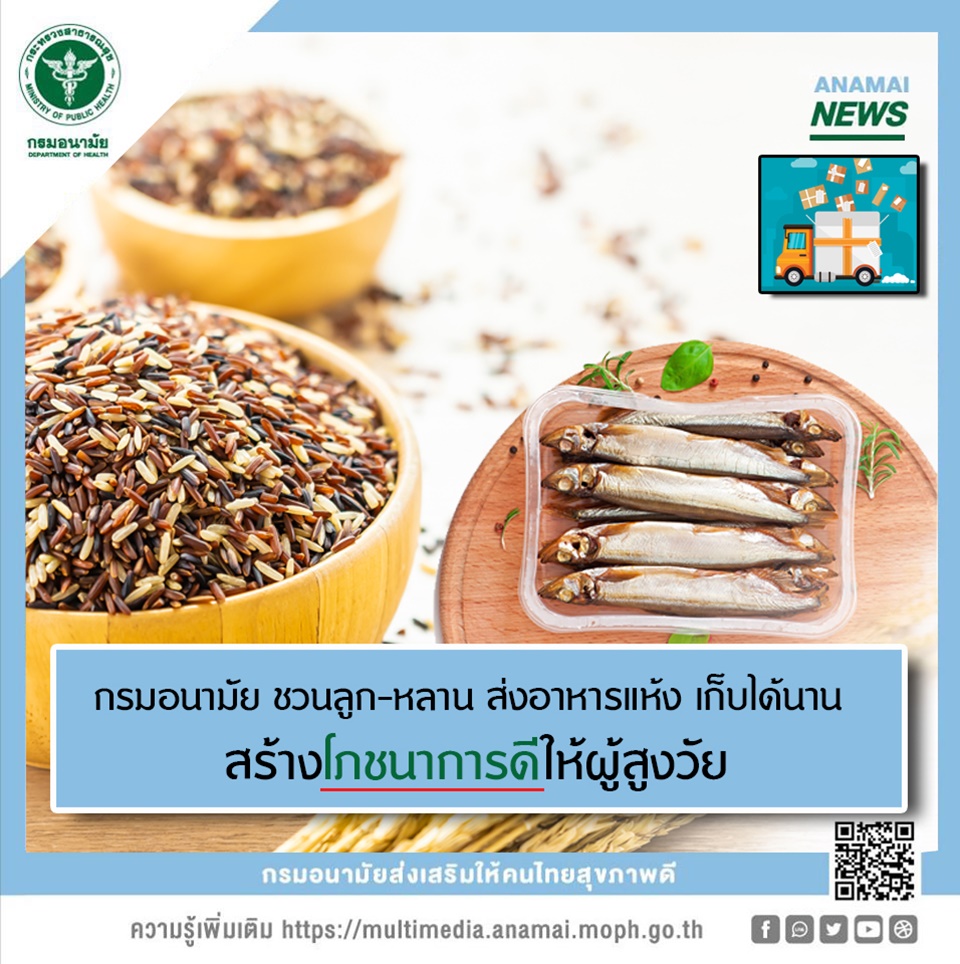 สธ.14 เม.ย.-รองอธิบดีกรมอนามัย ชวนลูกหลานส่งอาหารที่มีคุณค่าทางโภชนาการ “ข้าวกล้อง-ธัญพืชอบแห้ง-นมจืด-เมล็ดพืชที่ปลูกง่าย” ให้ พ่อแม่ ปู่ ย่า ตา ยาย และผู้ใหญ่ที่เคารพ แทนความรัก ความห่วงใยในช่วงเทศกาลสงกรานต์ปีนี้ ซึ่งอยู่ในช่วงการแพร่ระบาดของโรคโควิด-19