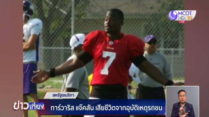 ทาร์วาริส แจ็คสัน อดีตควอเตอร์แบ็กของทีมซีแอตเทิล ซีฮอว์กส์ ในศึกอเมริกันฟุตบอลเอ็นเอฟแอลของสหรัฐ เสียชีวิตด้วยวัย 36 ปี หลังประสบอุบัติเหตุทางรถยนต์ ที่เมืองมอนต์กอเมอรี ในรัฐแอละแบมาของสหรัฐ โดยรายงานข่าวระบุว่า รถยนต์ของแจ็คสัน หลุดออกข้างทางไปชนกับต้นไม้แล้วพลิกคว่ำ จึงนำแจ็คสันส่งโรงพยาบาล แต่เสียชีวิตในเวลาต่อมา สำหรับแจ็คสันเคยเป็นผู้เล่นของมินเนโซตา ไวกิงส์, ซีแอตเทิล ซีฮอว์กส์ และบัฟฟาโล บิลส์ และเคยร่วมคว้าแชมป์ซูเปอร์โบวล์ประจำฤดูกาล 2013-2014 ในฐานะควอเตอร์แบ็กตัวสำรองของ รัสเซลล์ วิลสัน ควอเตอร์แบ็ก ที่นำซีฮอว์กส์ เอาชนะเดนเวอร์ บรองโกส์ 43-8 คว้าแชมป์สมัยแรกในประวัติศาตร์สโมสร โดยหลังจากเลิกเล่น แจ็คสันได้ผันตัวเองไปทำหน้าที่โค้ชควอเตอร์แบ็กให้กับทีมแอละแบมา สเตต และเทนเนสซี สเตต ทีมระดับมหาวิทยาลัย.-สำนักข่าวไทย