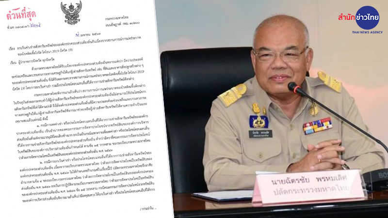 นายฉัตรชัย พรหมเลิศ ปลัดกระทรวงมหาดไทย มีหนังสือด่วนผู้ว่าราชการจังหวัด เรื่องยกเว้นค่าเช่าอสังหาริมทรัพย์ขององค์กรปกครองส่วนท้องถิ่นเนื่องจากสถานการณ์การแพร่ระบาดโควิด-19 เนื่องด้วยกระทรวงมหาดไทยพิจารณาแล้วเห็นว่าสถานการณ์การแพร่ระบาดของโควิด-19 ในปัจจุบันส่งผลกระทบทำให้ผู้เช่าอสังหาริมทรัพย์ขององค์กรปกครองส่วนท้องถิ่นไม่สามารถใช้ประโยชน์จากอสังหาริมทรัพย์ที่เช่าได้ตามปกติ จึงให้องค์กรปกครองส่วนท้องถิ่นที่มีความประสงค์จะช่วยเหลือและบรรเทาภาระทางเศรษฐกิจให้แก่ผู้เช่าพิจารณาช่วยเหลือได้ตามความจำเป็นและเหมาะสมแล้วแต่กรณี