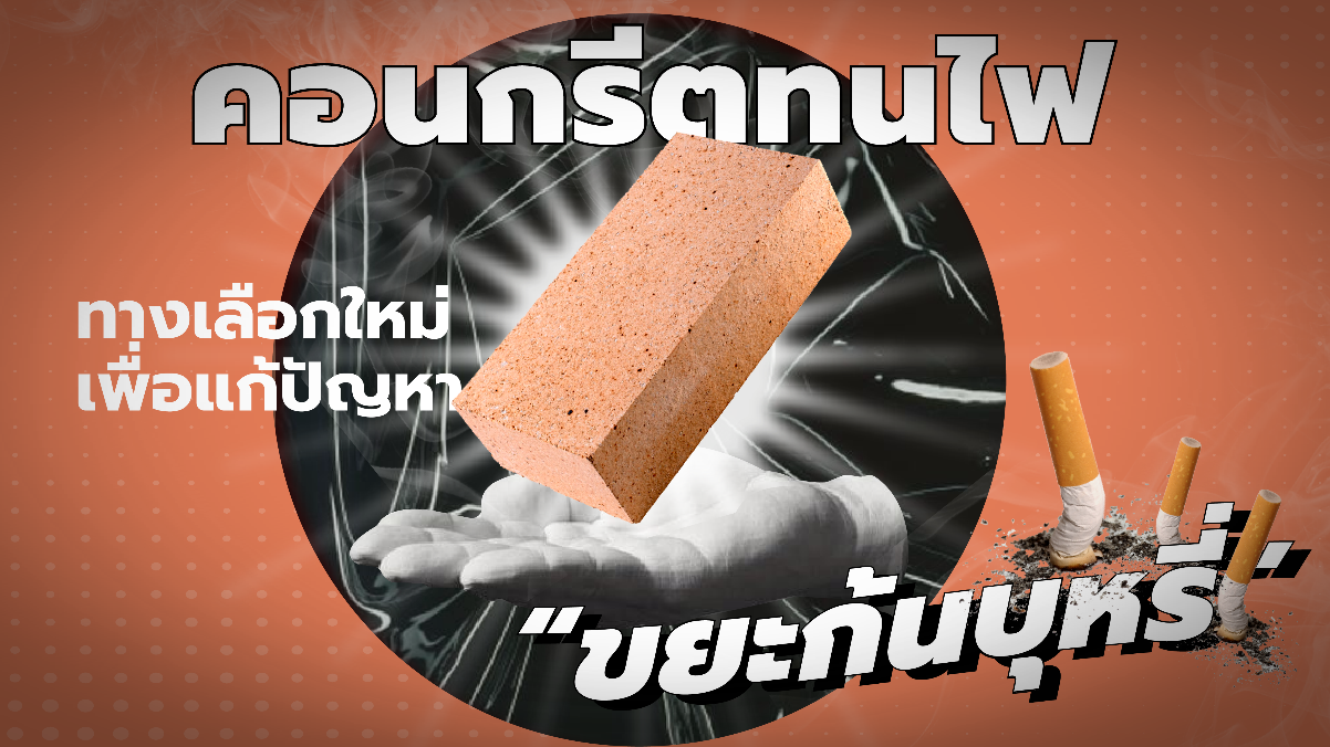 นางสาวแพรวา รุ่งทิวาสุวรรณ นางสาวจัสมิน มาหา และ นายสุทธิพัฒน์ ประทีปพิชัย นิสิตมหาวิทยาลัยศรีนครินทรวิโรฒ (มศว) ร่วมกันศึกษาเพื่อนำขยะก้นบุหรี่มาพัฒนารีไซเคิลเป็นคอนกรีตทนไฟ โดยผลการศึกษาพบว่า ขยะก้นบุหรี่เป็นขยะที่มักถูกมองข้าม เพราะขนาดเล็กจึงทำให้คิดว่าเป็นขยะที่ไม่อันตรายและไม่สร้างปัญหาด้านสิ่งแวดล้อม แต่แท้จริงแล้ว ขยะก้นบุหรี่มีปริมาณมากและส่งผลกระทบต่อธรรมชาติไม่ยิ่งหย่อนไปกว่าขยะพลาสติก ปริมาณขยะก้นบุหรี่ที่ถูกทิ้งโดยประมาณจากยอดการจำหน่ายบุหรี่ในปี 2561 เพียงปีเดียวในประเทศไทย มีจำนวนถึง 18,508.15 ล้านมวน หรือ 3146.39 ตัน และผลการสำรวจปริมาณขยะทะเลทั่วโลกของทีมนักวิจัยจากมหาวิทยาลัยจอร์เจีย ในปี 2561 ประเทศไทยติดอันดับที่ 5 ประเทศที่มีขยะในทะเลมากที่สุด เพราะขยะก้นบุหรี่เป็นขยะที่พบมากที่สุดในบริเวณชายหาดส่งผลกระทบต่อสิ่งแวดล้อมในวงกว้างอย่างคาดไม่ถึง พฤติกรรมการทิ้งขยะก้นบุหรี่อย่างเกลื่อนกลาดตามที่สาธารณะของผู้สูบบุหรี่ ทำให้ธรรมชาติและสิ่งแวดล้อมปนเปื้อนสารเคมี เช่น ท็อกซิน นิโคติน สารหนู ยาฆ่าแมลง และสารก่อมะเร็งกว่า 60 ชนิด หากปนเปื้อนในดินจะส่งผลกระทบต่อการเจริญเติบโตของพืชและปนเปื้อนในน้ำ ส่งผลให้เป็นอันตรายต่อสัตว์และสิ่งมีชีวิต นอกจากนี้ ก้นบุหรี่ผลิตจากเซลลูโลสอะซิเตท หรือ พลาสติกที่ผลิตจากพืช จึงใช้ระยะเวลาการย่อยสลายนานถึง 10 ปี ดังนั้นหากไม่ปรับเปลี่ยนพฤติกรรมของผู้สูบบุหรี่ ขยะก้นบุหรี่จะถูกสะสมในปริมาณมากจนกลายเป็นปัญหาที่แก้ไขได้ยาก