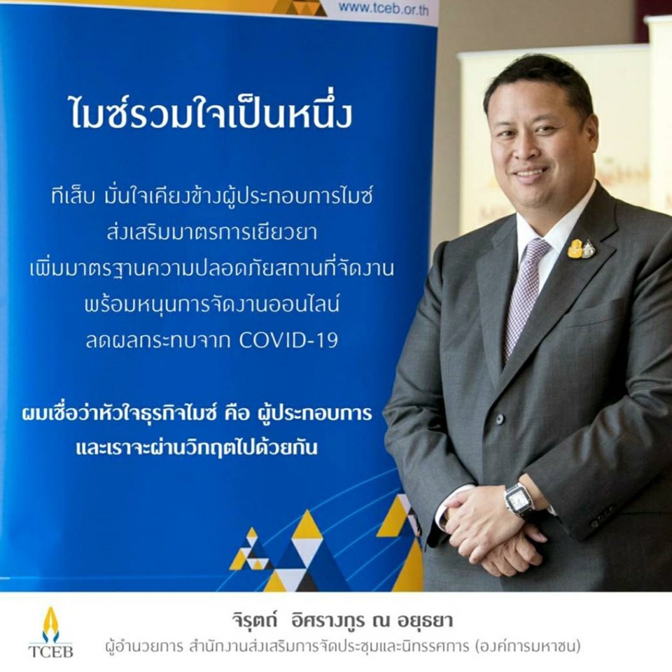 นายจิรุตถ์ อิศรางกูร ณ อยุธยา ผู้อำนวยการสำนักงานส่งเสริมการจัดประชุมและนิทรรศการ (องค์การมหาชน) หรือทีเส็บ กล่าวว่า ผลจากการระบาดของโควิด-19 เกิดการยกเลิกงานไมซ์ทั่วโลก ทำให้การประชุมออนไลน์ การแสดงสินค้าออนไลน์เริ่มเข้ามามีบทบาทสำคัญในการอยู่รอดของธุรกิจ ซึ่งผู้ประกอบการของไทยต้องปรับตัวให้ทัน ดังนั้น ทีเส็บจึงเข้ามาดำเนินการเพื่อเสริมมาตรการของรัฐบาล มุ่งเน้นการเตรียมความพร้อมมาตรฐานสถานที่จัดงานและผู้ประกอบการไมซ์ ได้แก่ การส่งเสริมมาตรฐานความปลอดภัย และการส่งเสริมการจัดงานโดยใช้เทคโนโลยีออนไลน์ 2 โครงการในระยะแรก