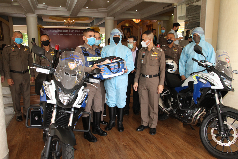 พล.ต.ต.จิรสันต์ แก้วแสงเอก รองผู้บัญชาการตำรวจนครบาล พร้อมด้วย พล.ต.ต.คมศักดิ์ สุมังเกษตร ผู้บังคับการตำรวจจราจร และตำรวจจราจร โครงการพระราชดำริ รับมอบชุดป้องกันภัยส่วนบุคคล หรือ PPE (Personal Protective Equipment) จากนายจเด็จ สวัสดิ์วงษ์ ประธานบริษัทยามาโตะ อีสเทิร์น จำกัด จำนวน 60 ชุด เพื่อนำไปใช้สวมใส่ขณะปฏิบัติหน้าที่ช่วยเหลือประชาชน นำส่งผู้ป่วย ผู้บาดเจ็บ ไปยังโรงพยาบาลต่างๆ ในเขตกรุงเทพมหานคร เพื่อป้องกันการติดเชื้อไวรัสโควิด-19 และอำนวยความสะดวกประชาชนช่วงการประกาศใช้ พ.ร.ก.ฉุกเฉินฯ