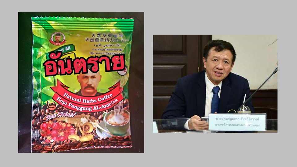 และจากการสืบค้นข้อมูลในระบบฐานข้อมูลผลิตภัณฑ์สุขภาพของ อย. พบว่าผลิตภัณฑ์เสริมอาหารดังกล่าว ไม่มีการขึ้นทะเบียนกับ อย. แต่พบ มีการขายผลิตภัณฑ์ที่ใช้ชื่อว่า Kopi Panggung Al-Ambiak Natural Herbs Coffee ทางอินเทอร์เน็ต
