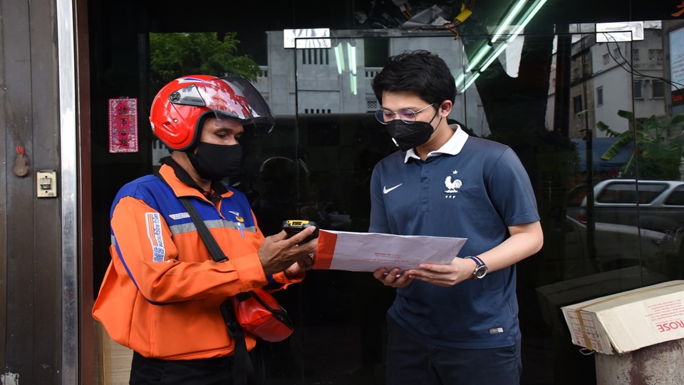 “สำหรับในพื้นที่ปริมณฑลและประชาชนกลุ่มเสี่ยงอื่น ได้แก่ จังหวัดนนทบุรี สมุทรปราการ และจังหวัดในภาคใต้ เป็นต้น รวมถึงพนักงานบริการที่มีความเสี่ยง เช่น พนักงานขนส่งมวลชน พนักงานสถานีรถไฟฟ้าและรถไฟใต้ดิน พนักงานไปรษณีย์ เจ้าหน้าที่ตำรวจ เป็นต้น จะดำเนินการจัดสรรให้ในลำดับต่อไป ทั้งนี้ไปรษณีย์ไทยได้ร่วมกับกระทรวงอุตสาหกรรม จัดทำซองไปรษณีย์ขึ้นมาพิเศษเพื่อใช้สำหรับการจัดส่งหน้ากากผ้าในระบบไปรษณีย์ด่วนพิเศษ (EMS) ตามโครงการผลิตหน้ากากผ้าเพื่อลดปัญหาการขาดแคลนหน้ากากอนามัยและป้องกันการระบาดของโรคติดเชื้อไวรัสโคโรน่า 2019 (COVID-19) แก่ประชาชนของกระทรวงอุตสาหกรรมโดยเฉพาะ” นายสุริยะ กล่าวว่า