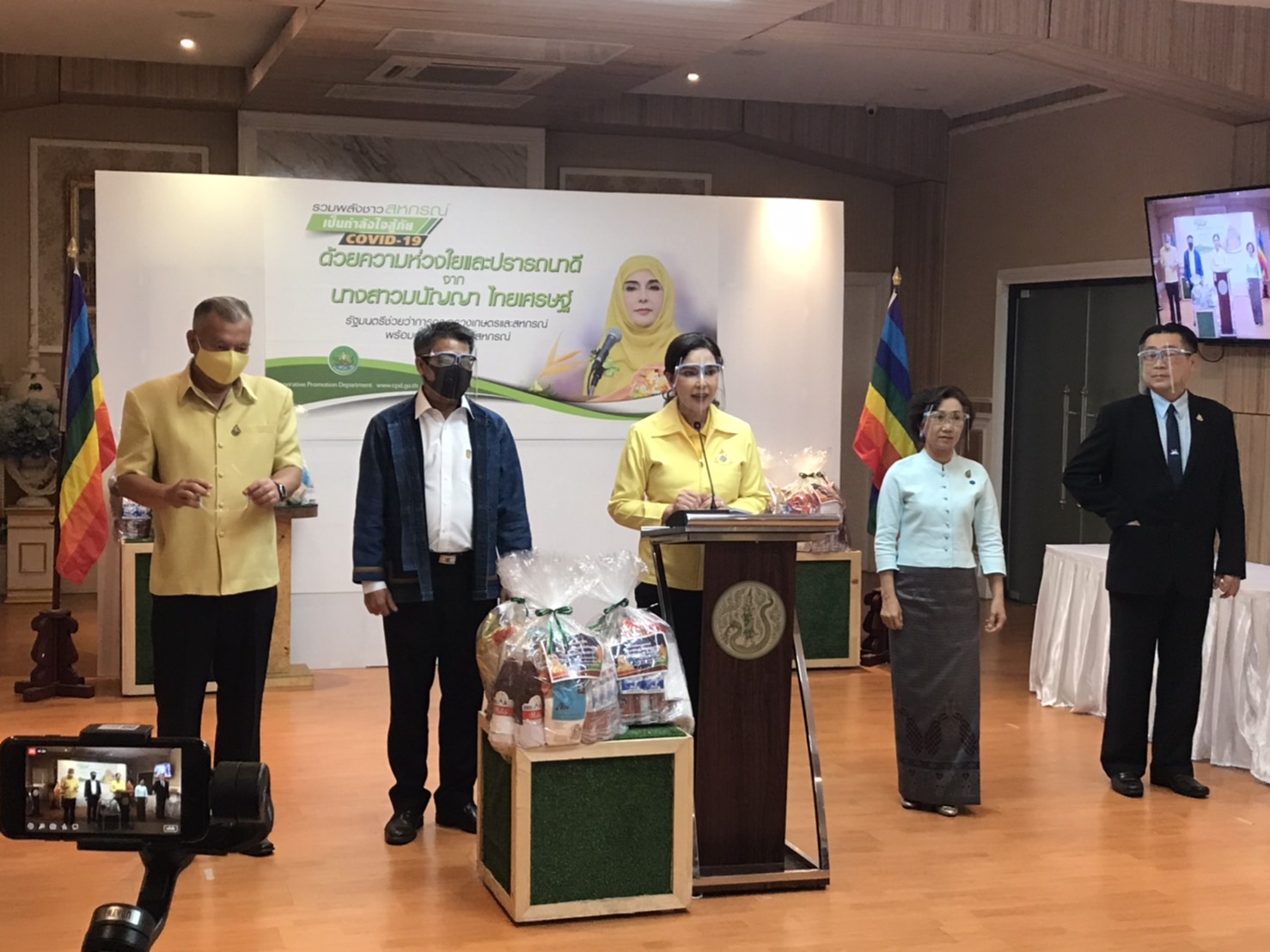นางสาวมนัญญา ไทยเศรษฐ์ รัฐมนตรีช่วยว่าการกระทรวงเกษตรและสหกรณ์ เป็นประธานเปิดกิจกรรม “ส่งความห่วงใยถึงพี่น้องไทยใน 3 จังหวัดชายแดนใต้ สู้ภัยโควิด-19” ผ่านทางแอพพลิเคชั่น ZOOM Cloud Meeting พร้อมกันนี้ยังได้มีการบรรจุถุงยังชีพจำนวน 4 พันชุดและปล่อยขบวนรถกระจายถุงยังชีพสู่หมู่บ้านที่ถูกปิดใน 3 จังหวัดชายแดนใต้ คือ ปัตตานี ยะลา และนราธิวาส ในโอกาสนี้ด้วย สำหรับงานนี้เป็นการร่วมมือของ 4 หน่วยงานของกระทรวงเกษตรและสหกรณ์ รวมทั้งสหกรณ์ 4 แห่ง คือ กรมส่งเสริมสหกรณ์ กรมตรวจบัญชีสหกรณ์ กรมวิชาการเกษตร และ องค์การส่งเสริมกิจการโคนมแห่งประเทศไทย รวมทั้งข้าวสารจำนวน 20 ตันจากสหกรณ์การเกษตรวิสัย จ.ร้อยเอ็ด สหกรณ์การเกษตรปักธงชัย จ.นครราชสีมา สหกรณ์การเกษตรพรหมพิราม จ.พิษณุโลก และ สหกรณ์การเกษตรเมืองอุตรดิตถ์ จ.อุตรดิตถ์