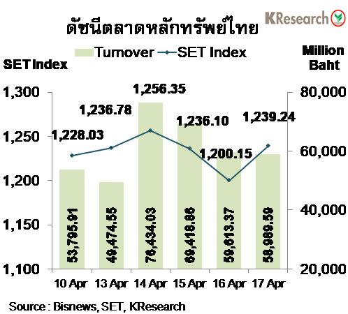 ปิดที่ระดับ 1,239.24 จุด เพิ่มขึ้น 0.91% จากสัปดาห์ก่อน ขณะที่มูลค่าการซื้อขายเฉลี่ยต่อวันอยู่ที่