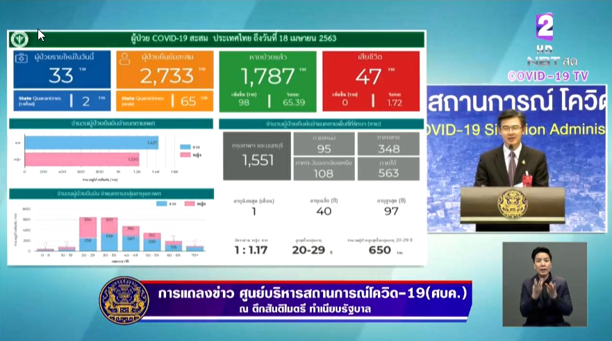 BANGKOK, April 18 (TNA) – The daily new cases of coronavirus disease 2019 (COVID-19) infection rose by 33 and there was not a new death case over the past 24 hours.