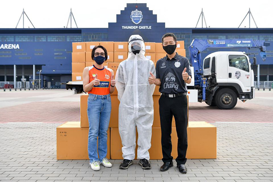 ในจังหวัดบุรีรัมย์ และ 50 ชุด สำหรับ หน่วยกู้ภัยมูลนิธิสว่างจรรยาธรรม นอกจากนี้ บริษัท ไทย ยามาฮ่า มอเตอร์ จำกัด, สโมสรบุรีรัมย์