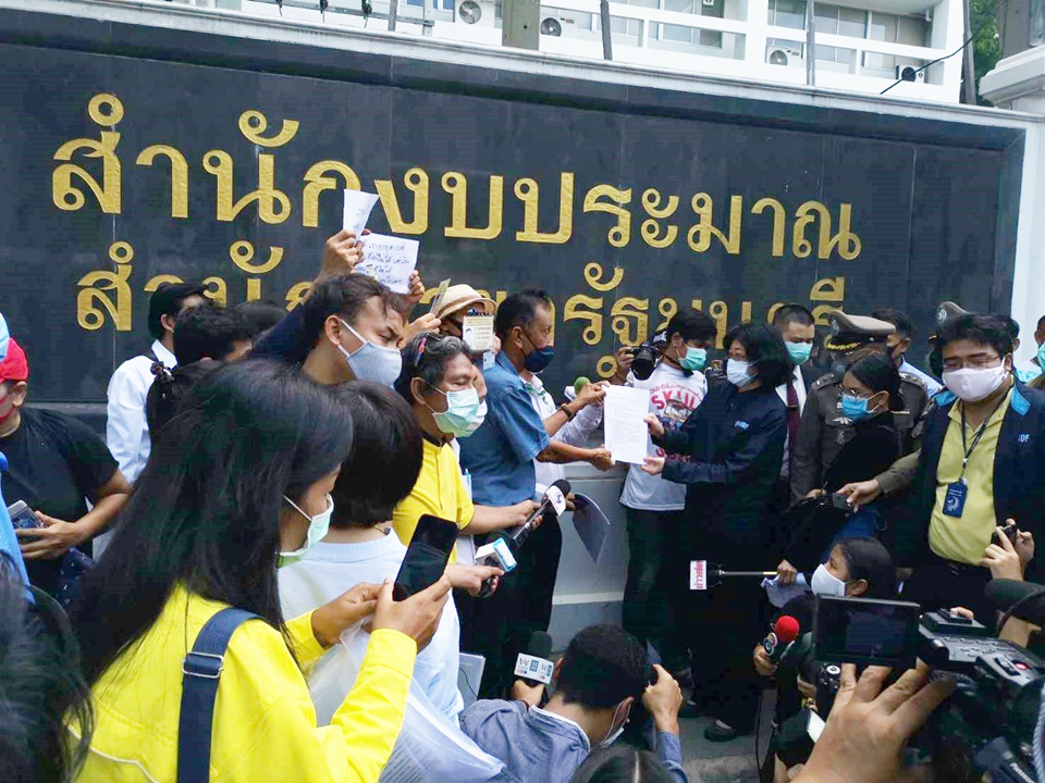 ก.คลัง 20 เม.ย. – ผู้ชุมนุมหน้ากระทรวงการคลังยื่นข้อเรียกร้องให้รัฐบาลจ่ายเงินเยียวยา 5 พันบาทให้ประชาชนทุกคนที่มีอายุ 20 ปี และแสดงบัตรประชาชนโดยไม่ต้องลงทะเบียน