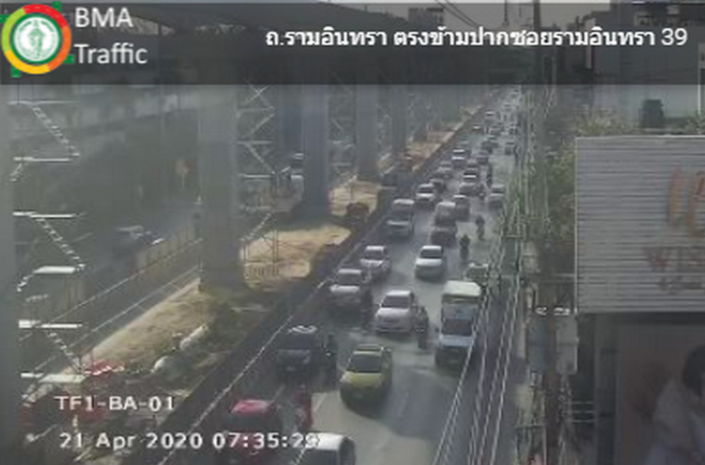 กทม. 21 เม.ย.-สวพ.FM91 รายงานจราจรเช้าวันอังคาร ถนนรามอินทรา ขาเข้า รถติดขัดช่วงแยกนวลจันทร์ (รามอินทรา 40) ท้ายแถวสะสมอยู่ที่หน้า รพ.สินแพทย์ ส่วนฝั่งขาออก ชะลอตัวช่วงกม.4 มีท้ายแถวสะสมตรงข้ามแหลมเจริญซีฟู๊ด รามอินทรา