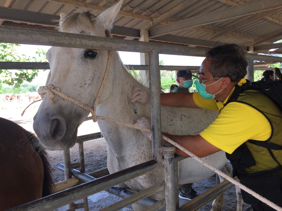 1. ทำความเข้าใจกับเจ้าของม้า เช่น เหตุผลที่ต้องฉีดวัคซีน การปฏิบัติกับม้าที่ฉีดวัคซีน และผลกระทบภายหลังฉีดวัคซีน รวมทั้ง อาจมีการสูญเสียม้าจากผลข้างเคียงของการใช้วัคซีน 2. ให้นำม้าเข้ามุ้ง เพื่อป้องกันแมลงกัด ก่อนเก็บเลือดอย่างน้อย 3 วัน ภายหลังฉีดวัคซีนอย่างน้อย 30 วัน 3. ขึ้นทะเบียนม้าทุกตัว โดยฝังไมโครชิพ และลงข้อมูลในฐานข้อมูลของระบบการทำเครื่องหมายและขึ้นทะเบียนสัตว์แห่งชาติ หรือ NID 4. ก่อนฉีดวัคซีนจะต้องได้รับความยินยอมจากเจ้าของ และต้องตรวจสุขภาพสัตว์ เช่น วัดอุณหภูมิตัวสัตว์ หากพบมีไข้ ไม่ให้ฉีดวัคซีน และกักแยกสัตว์ในมุ้งเพื่อดูอาการ เก็บตัวอย่างเลือดม้าส่งห้องปฏิบัติการ เพื่อตรวจดูการติดเชื้อ ในกรณีที่สัตว์ติดเชื้อ ให้แยกสัตว์ออกจากฝูง และดำเนินการป้องกันแมลงดูดเลือด เพื่อลดการแพร่จะจายของโรค 5. ดำเนินการฉีดวัคซีนในสัตว์ที่ไม่พบการติดเชื้อ และติดตามอาการข้างเคียงภายหลังจากฉีดวัคซีนอย่างต่อเนื่องเป็นเวลา 72 ชั่วโมง (หากแสดงอาการข้างเคียง ให้ดูแลรักษาตามอาการ) ในกรณีที่ม้าตั้งท้องให้พิจารณาการให้วัคซีนตามดุลยพินิจจากสัตวแพทย์ 6. หลังจากฉีดวัคซีนภายใน 1 เดือน ให้เก็บตัวอย่างเลือด เพื่อดูการตอบสนองของภูมิคุ้มกันหลังจากฉีดวัคซีน หากพบมีระดับภูมิคุ้มกันไม่อยู่ในระดับที่ป้องกันโรคได้ให้ฉีดวัคซีนกระตุ้นซ้ำ และ 7.ควบคุมการเคลื่อนย้ายสัตว์ โดยห้ามเคลื่อนย้ายสัตว์ที่ฉีดวัคซีนออกจากคอกเลี้ยงที่มีมุ้ง เป็นระยะเวลา 30 วัน และห้ามเคลื่อนย้ายสัตว์ออกจากพื้นที่ จนกระทั่งไม่มีสัตว์ป่วยเพิ่ม เป็นระยะเวลา 90 วัน อีกทั้งให้ปศุสัตว์จังหวัดทุกจังหวัดเร่งทำความเข้าใจกับผู้เลี้ยงม้าในพื้นที่เป้าหมายที่จะฉีดวัคซีน ประชาสัมพันธ์ สร้างการรับรู้และความเข้าใจการใช้วัคซีนป้องกันโรคและให้คำแนะนำการเตรียมความพร้อมก่อนและหลังการฉีดวัคซีน และข้อปฏิบัติภายหลังการฉีดวัคซีนให้เป็นไปตามมาตรการข้อกำหนดเงื่อนไขการฉีดวัคซีน