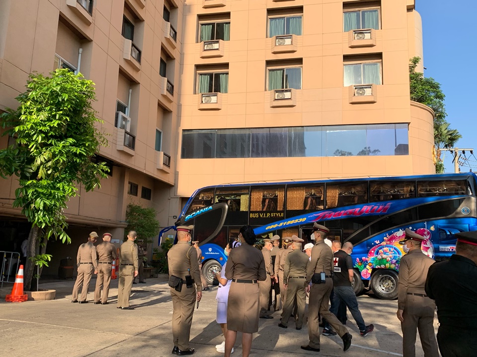กรุงเทพฯ 21 เม.ย.- เจ้าหน้าที่รับตัวคนไทยผู้เข้ารับการเฝ้าระวัง เป็นเวลา 14 วัน จำนวน 220 คน เข้าที่พักโรงแรม ย่านห้วยขวาง หลังเดินทางกลับจากประเทศญี่ปุ่น และไต้หวัน เมื่อช่วงบ่ายที่ผ่านมา