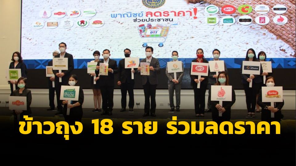 สำหรับภาคเอกชนผู้ผลิตและจำหน่ายข้าวบรรจุถุงร่วมลดราคากับกระทรวงพาณิชย์ครั้งนี้ ประกอบด้วย 18 ยี่ห้อ ข้าวตราฉัตร ข้าวตรามาบุญครอง ข้าวตราแสนดี ข้าวตราพนมรุ้ง ข้าวตราปิ่นเงิน ข้าวตราหงษ์ทอง ข้าวตราเบญจรงค์ ข้าวตราบัวชมพู ข้าวตราพันธุ์ดี ข้าวตราดอกบัวตงฮั้ว ข้าวตราซันลี ข้าวตราธรรม ข้าวตราไก่แจ้ ข้าวตราเอโร่ ข้าวตราTesco ข้าวตรา Big C ข้าวตราท็อปส์/มายช้อยส์ และข้าวตรา Home fresh mart