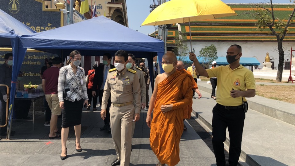 กรุงเทพฯ 23 เม.ย.-“เทวัญ” ยกโรงทานวัดระฆังโฆสิตาราม เป็นโรงทานตัวอย่าง – บริหารจัดการป้องกันโควิด-19 เผยนายกรัฐมนตรีขอบคุณคนไทยร่วมมือมาตรการรัฐ จนทำให้ยอดผู้ติดเชื้อลดลง