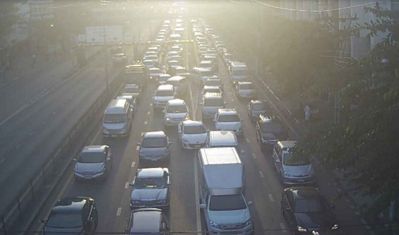 ถนนลาดพร้าว ขาเข้า รถหนาแน่น ท้ายแถวสะสมทางลงสะพานข้ามแยกบางกะปิ