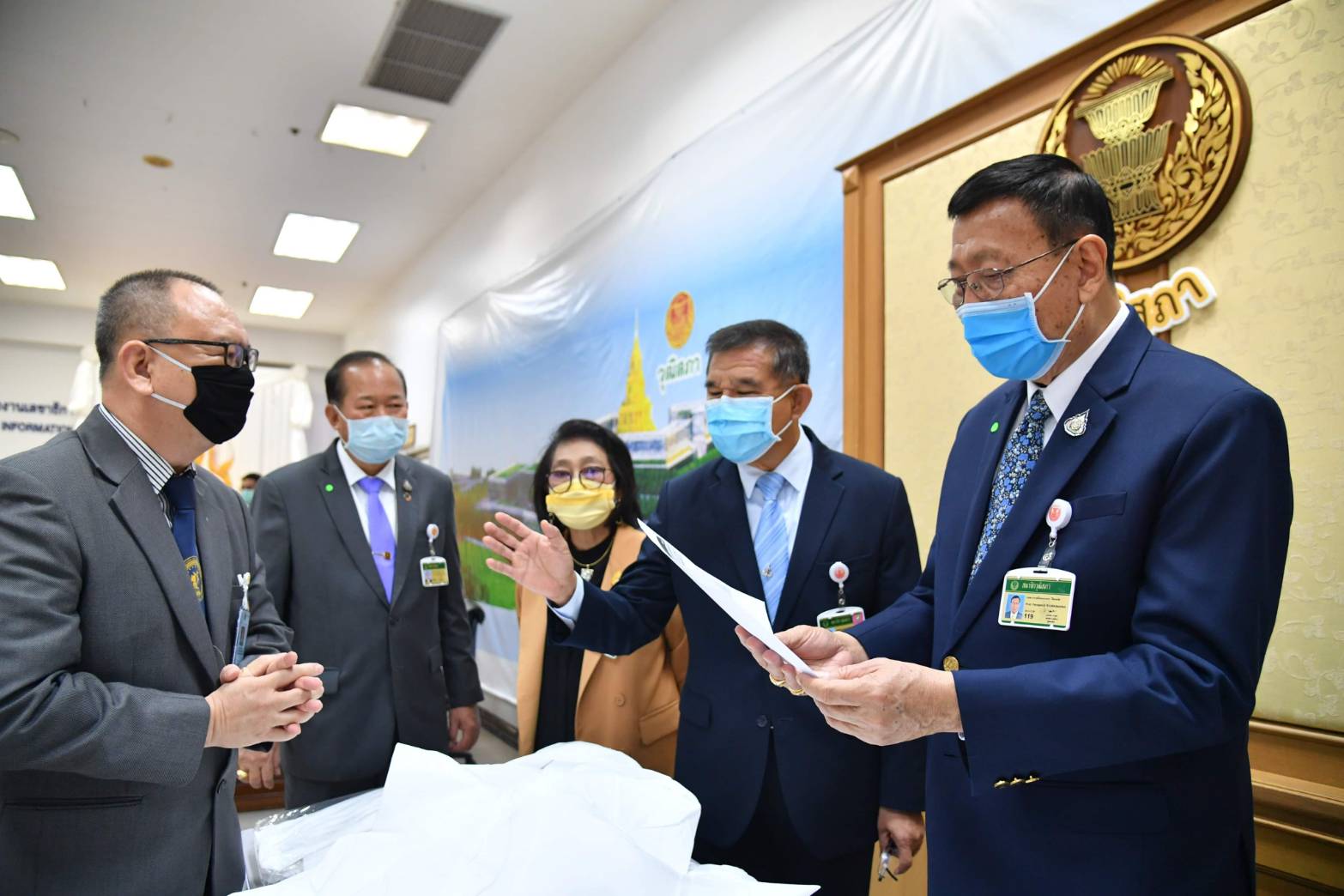 ในการป้องกันการแพร่ระบาดของโรคติดเชื้อไวรัสโคโรนา 2019 (COVID-19) ซึ่งใน โอกาสนี้ ศาสตราจารย์พิเศษพรเพชร วิชิตชลชัย ประธานวุฒิสภา