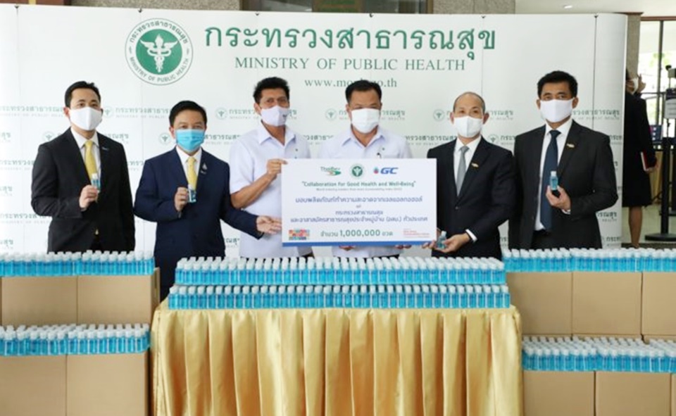 นับว่าเป็นการสานพลังความร่วมมือครั้งสำคัญระหว่าง 2 บริษัทยักษใหญ่ของประเทศไทยที่ต่างก็เป็นองค์กรที่ถูกจัดอันดับให้เป็นองค์กรต้นแบบแห่งความยั่งยืนระดับโลก ที่มีการดำเนินธุรกิจตามแนวทางการพัฒนาอย่างยั่งยืน Dow Jones Sustainability Indices หรือ DJSI บริษัท ไทยเบฟเวอเรจ จำกัด (มหาชน) และบริษัท พีทีที โกลบอล เคมิคอล จำกัด (มหาชน) หรือ GC ที่ได้ผนึกกำลังกันออกมาร่วมกู้วิกฤต COVID-19 ด้วยการสนับสนุน Ethyl Alcohol 72% ในรูปแบบ เจลแอลกอฮอล์ล้างมือ สำหรับพกพา ขนาด 50 ซีซี จำนวน 1,000,000 ขวด เพื่อส่งมอบให้กับกระทรวงสาธารณสุขแจกจ่ายไปยังอาสาสมัครสาธารณสุขประจำหมู่บ้าน หรือ อสม.ทั่วประเทศ โดยมีนายอนุทิน ชาญวีรกุล รองนายกรัฐมนตรีและรัฐมนตรีว่าการกระทรวงสาธารณสุข นายสาธิต ปิตุเตชะ รัฐมนตรีช่วยว่าการกระทรวงสาธารณสุข นายสุขุม กาญจนพิมาย ปลัดกระทรวงสาธารณสุข นายแพทย์ธเรศ กรัษนัยรวิวงศ์ อธิบดีกรมสนับสนุนบริการสุขภาพ รับมอบเจลแอลกอฮอล์ดังกล่าวจาก บริษัท ไทยเบฟเวอเรจ จำกัด (มหาชน) และ บริษัท พีทีที โกลบอล เคมิคอล จำกัด (มหาชน)