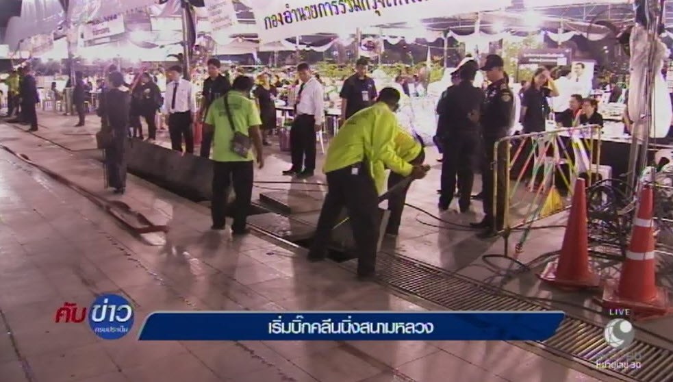 พลตำรวจเอกอัศวิน กล่าวว่า คืนนี้เป็นการดูดและล้างสิ่งปฏิกูลที่ติดค้างในท่อตามถนนรอบสนามหลวงและพระบรมมหาราชวังรวมระยะทาง 7 กิโลเมตร จะดำเนินการตลอดคืนไปจนถึงเวลา 05.00 น. แต่หากยังไม่แล้วเสร็จก็จะดำเนินการต่อคืนพรุ่งนี้ โดยมีการระดมกำลังเจ้าหน้าที่จากทุกฝ่ายกว่า 100 นาย ทั้งเจ้าหน้าที่เทศกิจ สำนักโยธา ตำรวจนครบาล รวมทั้งหน่วยเก็บกู้วัตถุระเบิด (อีโอดี) ในกรณีหากมีวัตถุต้องสงสัยด้วย
