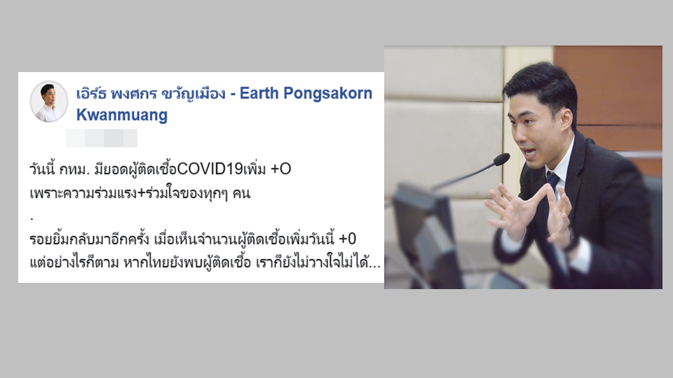 ร.ต.อ.พงศกร ขวัญเมือง โฆษกกรุงเทพมหานคร โพสต์เฟซบุ๊กส่วนตัวว่าวันนี้ (27เม.ย.)กทม.มียอดผู้ติดเชื้อโควิด-19 เพิ่ม +O เพราะความร่วมแรง ร่วมใจของทุกๆคน รอยยิ้มกลับมาอีกครั้ง เมื่อเห็นจำนวนผู้ติดเชื้อเพิ่มวันนี้ +0 แต่อย่างไรก็ตามหากไทยยังพบผู้ติดเชื้อก็ยังวางใจไม่ได้ กทม.จะทำต่อไปและขอให้ทุกคนร่วมมืออีกสักระยะ เชื่อว่าไม่นานนักเราจะกลับมาใช้ชีวิตปกติได้