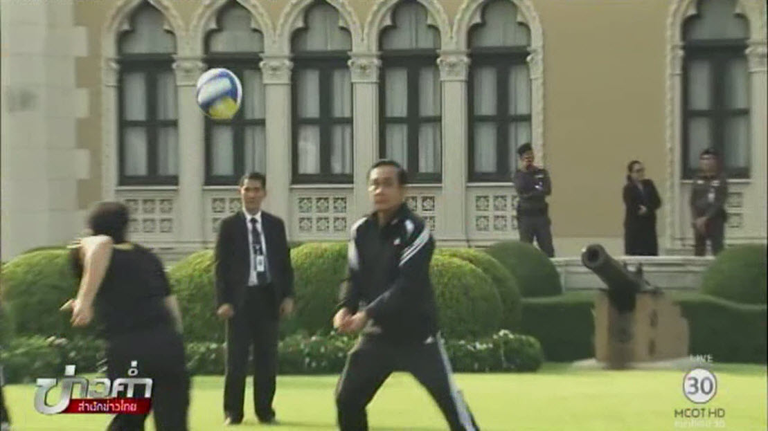 ทำเนียบฯ 30 พ.ย.-ตามที่นายกรัฐมนตรีกำหนดให้ข้าราชการออกกำลังกายทุกวันพุธ วันนี้เป็นสัปดาห์ที่ 2 ที่นายกรัฐมนตรีนำข้าราชการประจำทำเนียบรัฐบาลออกกำลังกาย มีการเตะตะกร้อ เล่นวอลเลย์บอล พร้อมย้ำอย่าให้เสียงาน