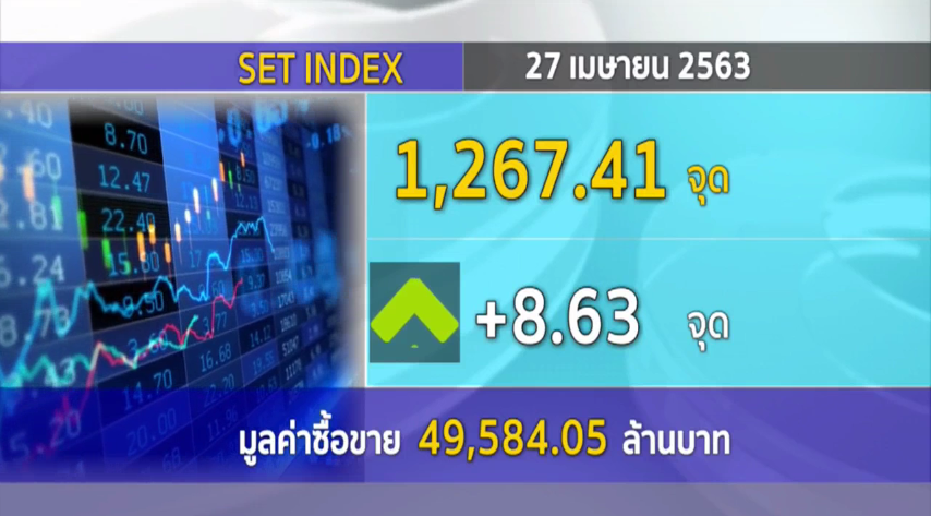 กรุงเทพฯ  27 เม.ย. – หุ้นไทยปิดบวก 8.63 จุด ตามตลาดหุ้นทั่วโลก หลังหลายประเทศคลายล็อกดาวน์ ญี่ปุ่นผ่อนคลายการเงิน