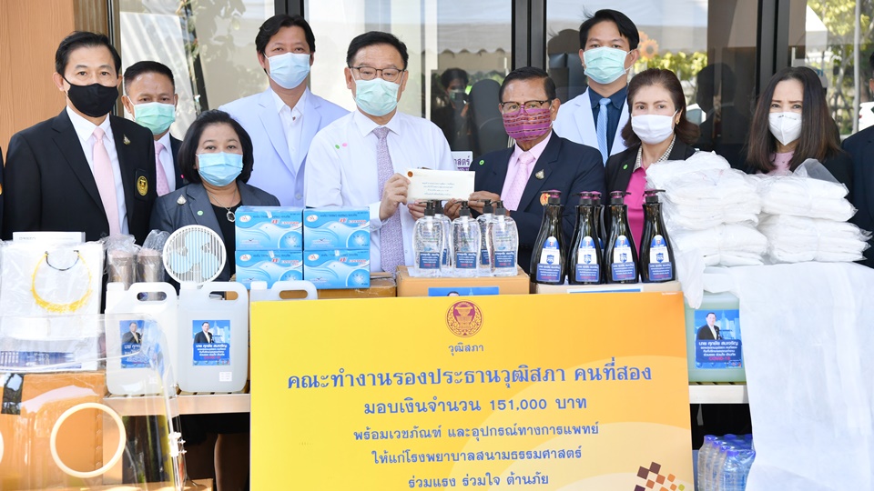 นายศุภชัย สมเจริญ รองประธานวุฒิสภา คนที่สอง มอบเงินบริจาค 151,000 บาท พร้อมอุปกรณ์ทางการแพทย์ ประกอบด้วย ชุด PPE จำนวน 25 ชุด หน้ากาก Face Shield จำนวน 100 ชิ้น แอลกอฮอล์ขนาด 25 ลิตร จำนวน 2 แกลลอน เจลแอลกอฮอล์ Le skin ขนาด 5 ลิตร จำนวน 8 แกลลอน เจลแอลกอฮอล์ล้างมือขนาด 5 ลิตร จำนวน 3 แกลลอน เจลแอลกอฮอล์ล้างมือขนาด 500 มิลลิลิตร จำนวน 50 ขวด เจลแอลกอฮอล์ล้างมือขนาด 700 มิลลิลิตร จำนวน 20 ขวด น้ำดื่ม 13 แพค พัดลมมินิไร้สาย จำนวน 10 ตัว กระติกน้ำ จำนวน 10 กระบอก อุปกรณ์ป้องกันการฟุ้งกระจายของละอองฝอย จำนวน 30 กล่อง อุปกรณ์ป้องกันใบหน้าและตา จำนวน 7 โหล และหน้ากากอนามัย จำนวน 500 ชิ้น ให้แก่โรงพยาบาลสนามธรรมศาสตร์ โดยมี นายสุรพล นิติไกรพจน์ ประธานคณะกรรมการบริหารโรงพยาบาลธรรมศาสตร์เฉลิมพระเกียรติ เป็นผู้รับมอบ เพื่อนำไปใช้สนับสนุนการทำงานของแพทย์ พยาบาล และบุคลากรทางการแพทย์ในการป้องกันการแพร่ระบาดของโรคติดเชื้อไวรัสโคโรนา 2019 (โควิด-19) ต่อไป