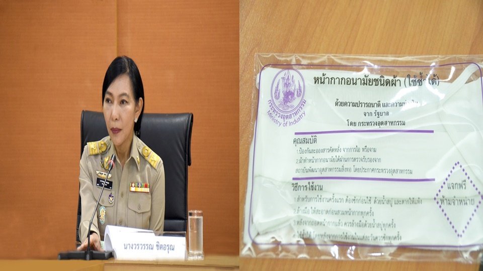 นางวรวรรณ ชิตอรุณ รองปลัดกระทรวงอุตสาหกรรม ในฐานะประธานคณะกรรมการกำกับและบริหารโครงการผลิตหน้ากากผ้าเพื่อลดปัญหาการขาดแคลนหน้ากากอนามัยและป้องกันการระบาดของ โรคติดเชื้อไวรัสโคโรนา 2019 (COVID-19) ยืนยันว่า คุณภาพมาตรฐานของหน้ากากผ้าผลิตโดยกระทรวงอุตสาหกรรม ขอให้ประชาชนมั่นใจได้ว่า สามารถใช้เพื่อป้องกันละอองสารคัดหลั่ง จากการไอหรือจาม ขนาด 5 ไมครอน และใช้ลดความเสี่ยงในการติดเชื้อได้ในการใช้ชีวิตประจำวันทั่วไปได้ เพราะกระทรวง ฯ ให้ความสำคัญ ใส่ใจและเน้นย้ำในกระบวนการผลิตโดยเน้นที่ความปลอดภัยของประชาชนเป็นหลัก