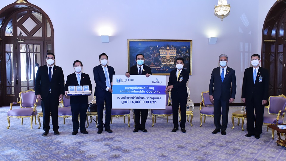 นายเทวัญ ลิปตพัลลภ รัฐมนตรีประจำสำนักนายกรัฐมนตรี นำผู้บริการกองทุนมิตรผล – บ้านปู ร่วมใจสู้ภัยโควิด-19 พร้อมด้วยสภาธุรกิจไทย-จีน บริจาคหน้ากาก 1,200,000 ชิ้น และคณะผู้บริหารบริษัท คีนน์ จำกัด เข้าพบ พล.อ.ประยุทธ์ จันทร์โอชา นายกรัฐมนตรีและรัฐมนตรีว่าการกระทรวงกลาโหม เพื่อส่งมอบสิ่งของและอุปกรณ์ทางการแพทย์ให้บุคลากรทางการแพทย์และเจ้าหน้าที่ที่ปฏิบัติหน้าที่ในการป้องกันการแพร่ระบาดของโรคติดเชื้อไวรัสโคโรนา 2019 (โควิด-19) ที่ทำเนียบรัฐบาล