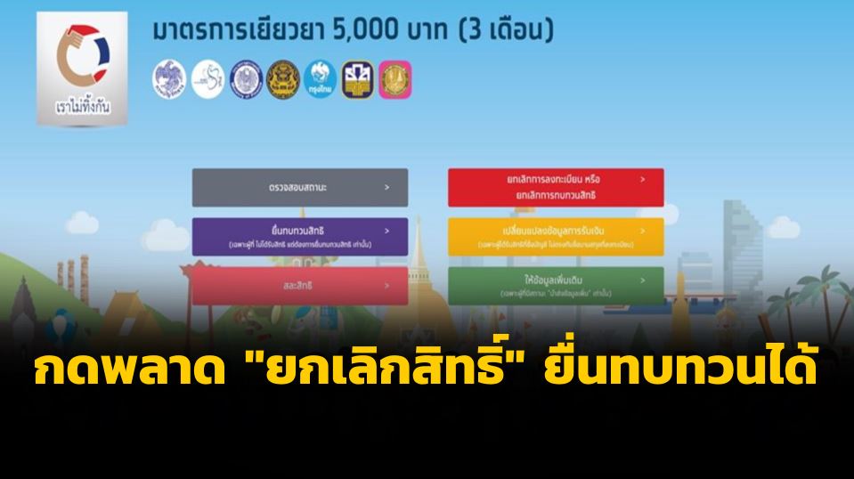 นายธนกร วังบุญคงชนะ เลขานุการรัฐมนตรีว่าการกระทรวงการคลัง เปิดเผยภายหลังลงพื้นที่หน้ากระทรวงการคลัง เพื่อติดตามการร้องทุกข์ขอรับเงินเยียวยา5000 บาท ว่า วันพรุ่งนี้ (1 พ.ค.) เว็บไซต์ www.เราไม่ทิ้งกัน.com จะเปิดโอกาสให้ผู้ที่พลาดไปกดปุ่มยกเลิกสิทธิ์รับการเยียวยา หรือยกเลิกการทบทวนสิทธิ์ “ปุ่มสีแดง” โดยไม่ตั้งใจให้สามารถเข้าไปกด “ปุ่มสีม่วง” เพื่อยื่นทบทวนสิทธิ์ได้ใหม่อีกครั้ง เนื่องจากที่ผ่านมามีผู้ลงทะเบียนร้องเรียนจำนวนมากว่าไปกดยกเลิก ทำให้ไม่สามารถเข้าไปทำรายการเพื่อขอรับเงินเยียวยาได้ โดยระบบจะเปิดให้ลงทะเบียนตั้งแต่ 06.00-18.00 น.ทุกวัน สำหรับการจ่ายเงินนั้น สัปดาห์หน้ากระทรวงการคลังจะจ่ายเงินให้ผู้ที่ผ่านสิทธิ์ได้ทั้งหมด 10.6 ล้านคน