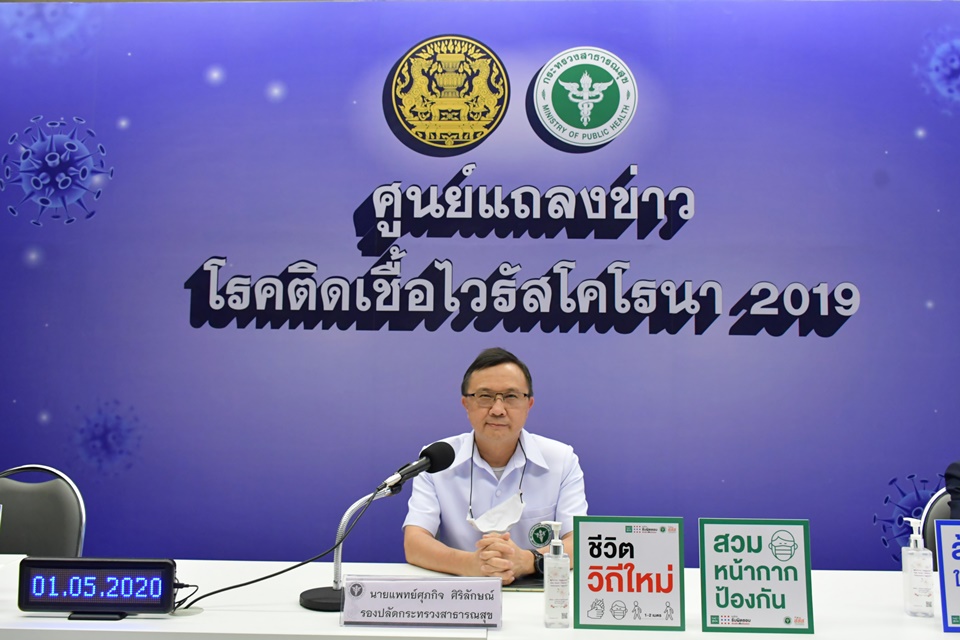 บ่ายวันนี้ (1 พ.ค.) ที่ศูนย์ปฏิบัติการด้านข่าวโรคติดเชื้อไวรัสโคโรนา 2019 กระทรวงสาธารณสุข นพ.ศุภกิจ ศิริลักษณ์ รองปลัดกระทรวงสาธารณสุข กล่าวว่า มาตรการผ่อนปรนที่รัฐบาลประกาศอย่างเป็นทางการ จะมีรายละเอียดคู่มือในการดำเนินการออกมาในหลายกิจกรรม เช่น การออกกำลังกายในสวนสาธารณะ การรับประทานอาหารในร้าน การตัดผม ฯลฯ ซึ่งมีกิจการ/กิจกรรมมากมายไม่สามารถตอบในรายละเอียดได้ทั้งหมด จึงควรกลับมาทบทวนหลักการป้องกันว่าคนที่มีเชื้อแล้วจะนำเชื้อไปสู่คน ที่ยังไม่ป่วยได้อย่างไร ซึ่งวิธีติดเชื้อมี 2 ส่วน คือการที่ทำให้สารคัดหลั่งกระเด็นออกจากตัวไปสู่คนที่อยู่ใกล้ และเข้าทางปาก จมูกโดยตรง ดังนั้นถ้าใส่หน้ากากให้กระชับใบหน้า ทั้งคนที่มีเชื้อและไม่มีเชื้อ ซึ่งขณะนี้เราใส่กันเกือบทุกคน ประมาณ 80-90 เปอร์เซ็นต์ และเว้นระยะห่าง โอกาสแพร่เชื้อก็จะมีสภาพเกือบเป็นศูนย์