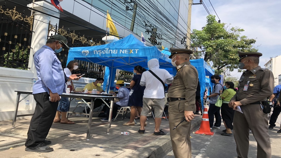 ทางกระทรวงการคลังจึงจัดเจ้าหน้าที่มาบริการประชาชน ตอนนี้มีผู้รออยู่ไม่เกิน 100 คน ทั้งนี้ เรื่องสำคัญที่สุด ช่วงนี้เป็นช่วงที่โควิด-19 กำลังแพร่ระบาด พี่น้องประชาชนที่จะมาเรียกร้องสิทธิ์ สอบถาม