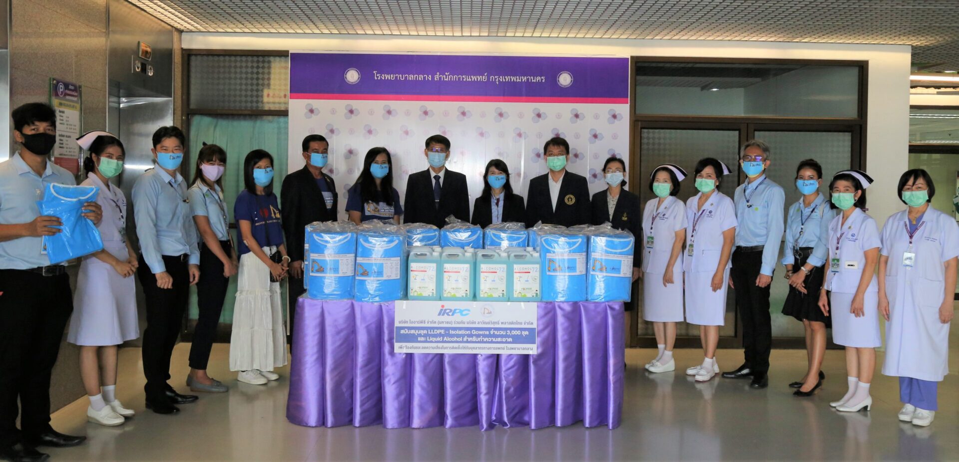ซึ่งมีคุณสมบัติที่สามารถกันน้ำและสารคัดหลั่งได้ และมอบแอลกอฮอล์ความเข้มข้น 72% สำหรับทำความสะอาดและป้องกันเชื้อโรค จำนวน 80 ลิตร ให้กับโรงพยาบาลกลาง โดยมี นพ.เพชรพงษ์ กำจรกิจการ