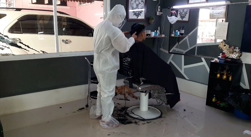 ที่ จ.อุทัยธานี ร้านตัดผมหลายแห่งในพื้นที่หมู่ 5 ต.ทุ่งพง อ.หนองฉาง เปิดบริการแล้วจากที่ติดตามข่าวสารและได้เตรียมความพร้อมไว้แล้ว โดยมีการจัดพื้นที่ตามข้อปฏิบัติในการป้องกันควบคุมโรค อย่างที่ร้าน “คุ้มกะลาหัว บาร์เบอร์” มีลูกค้ามาใช้บริการแต่เช้า ขณะที่นายเตชินท์ เเพบัว อายุ 22 ปี เจ้าของร้าน สวมชุดป้องกันเชื้อ หน้ากากอนามัย และ face shield