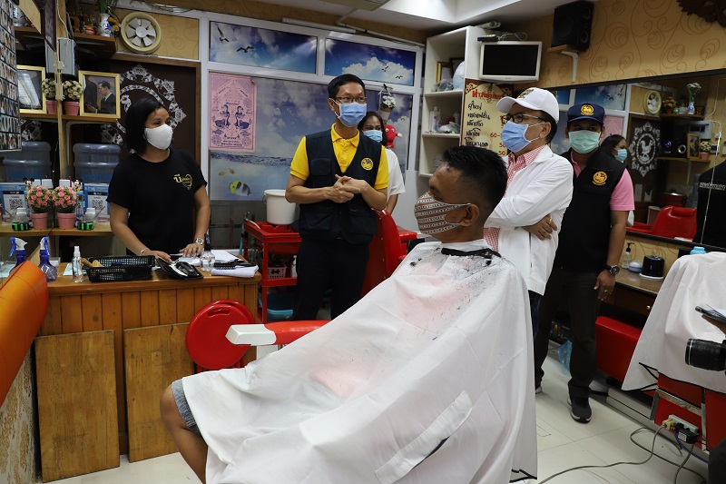 นครศรีธรรมราช 3 พ.ค.- นายอำเภอเมืองนครศรีฯ ออกตรวจร้านตัดผมย่านสี่แยกท่าวัง พบทั้งผู้ประกอบการและลูกค้าไม่ย่อหย่อนคุมเข้มโควิด-19 และปรับตัวเข้ากับสถานการณ์