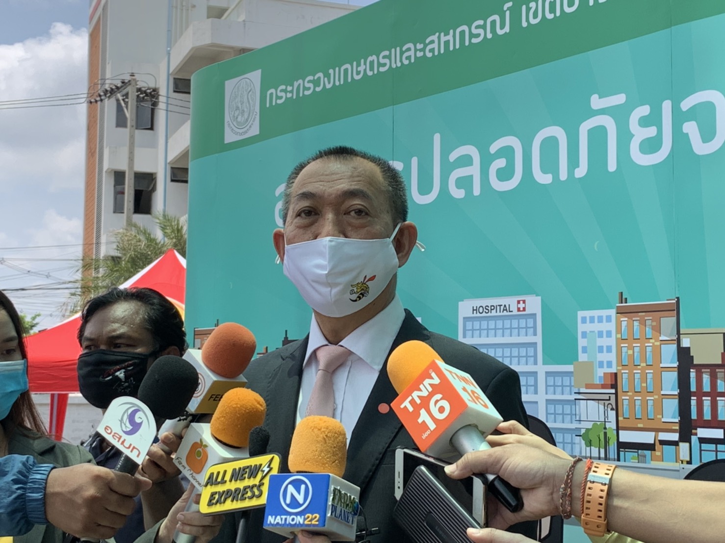 รมว. เกษตรฯ กล่าวว่า กระทรวงเกษตรฯ ได้ร่วมมือกับซีพีเอฟจัดโครงการ “อาหารปลอดภัยจากใจ…สู่ชุมชน” เพื่อบรรเทาความเดือดร้อนของพี่น้องประชาชนในชุมชนแออัดจากผลกระทบของโควิด-19 เริ่มต้นโครงการที่ เขตบางกอกน้อย และจะขยายความช่วยเหลือไปยังเขตอื่นๆต่อไป