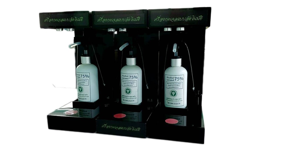 2) เครื่องกดเจลล้างมือไม่สัมผัสแบบอัตโนมัติ ใช้วัสดอุปกรณ์ประเภทแผ่นอะคริลิค สวิตซ์ เซ็นเซอร์ น้ำยาประสาน วัสดุมอเตอร์ เป็นต้น โดยใช้วิธีการประกอบแผ่นอะคริลิค ประกอบให้ได้ตามโครงสร้าง นำระบบเซ็นเซอร์ แผงวงจร มอเตอร์ติดตั้งในเครื่อง และติดตั้งเจลแอลกอฮอล์ล้างมือ การใช้งานเมื่อยื่นมือเข้ามาในระยะที่ตั้งค่าเซนเซอร์ไว้ เซ็นเซอร์จะทำงานโดยสั่งมอเตอร์ที่ยึดไว้กับหัวปั้มเจลให้กดลง และเจลแอลกอฮอล์ก็จะไหลออกมาจากขวด โดยอุปกรณ์กดเจลล้างมือแบบไม่สัมผัสมือทั้ง 2 แบบสามารถหาวัสดุอุปกรณ์ได้ ใช้ต้นทุนที่ไม่แพง วัสดุใช้ง่าย ปลอดภัย เคลื่อนย้ายได้สะดวก นำไปใช้ได้ในหลายจุด และสามารถนำไปใช้ได้จริง