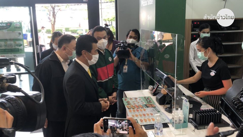 ผู้สื่อข่าวรายงานว่า วันนี้ (8 พ.ค.) นายเทวัญ ลิปตพัลลภ รัฐมนตรีประจำสำนักนายกรัฐมนตรี และนายพิฆเนศ ต๊ะปวง รองเลขาธิการคณะกรรมการคุ้มครองผู้บริโภค (คคบ.) ลงพื้นที่ตรวจสอบการปฏิบัติงานของผู้ให้บริการจัดส่งอาหารและพัสดุ ณ ร้านเดอะ พิซซ่า คอมปะนี สาขาพีเพิล พาร์ค คอมมูนิตี้ มอลล์ เขตสวนหลวง กรุงเทพฯ พบว่า ทางร้านมีมาตรการความปลอดภัยให้แก่ลูกค้า ด้วยการคัดกรองพนักงานและลูกค้า ก่อนเข้าใช้บริการภายในร้าน โดยตรวจอุณหภูมิร่างกาย และมีจุดบริการเจลแอลกอฮอล์ พนักงานมีการสวมหน้ากากอนามัย และเฟซชิลด์ในขณะปฏิบัติงาน ทำความสะอาดอุปกรณ์ภายในร้านด้วยแอลกอฮอล์ พนักงานจัดส่งอาหารมีการตรวจวัดอุณหภูมิร่างกาย วันละ 2 ครั้ง ทาความสะอาดมือ และยานพาหนะ กระเป๋าส่งอาหาร รวมถึง กล่องใส่พิซซ่าท้ายรถด้วย กำหนดจุดให้ลูกค้าเว้นระยะสำหรับเข้าคิวสั่งอาหารและลดการสัมผัส (Zero Touch Delivery) ส่งเสริมให้ลูกค้าชำระค่าอาหารผ่านทางระบบอิเล็กทรอนิกส์